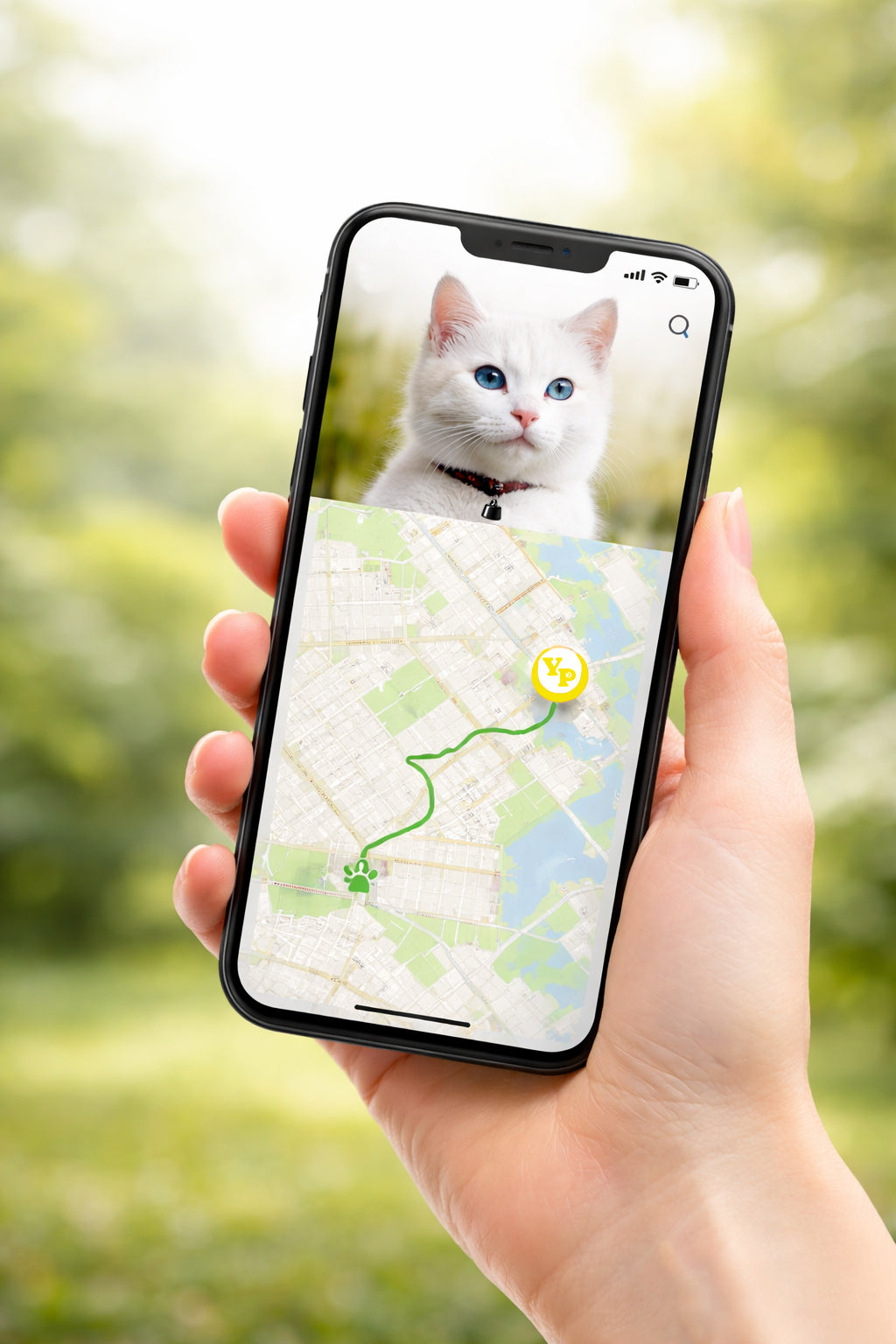 Le YellowPerson™ FindTag fonctionne avec une application mobile compatible iOS et Android. Il permet de localiser votre chat (ou chien) en temps réel, consulter ses déplacements et recevoir des notifications selon les paramètres définis.