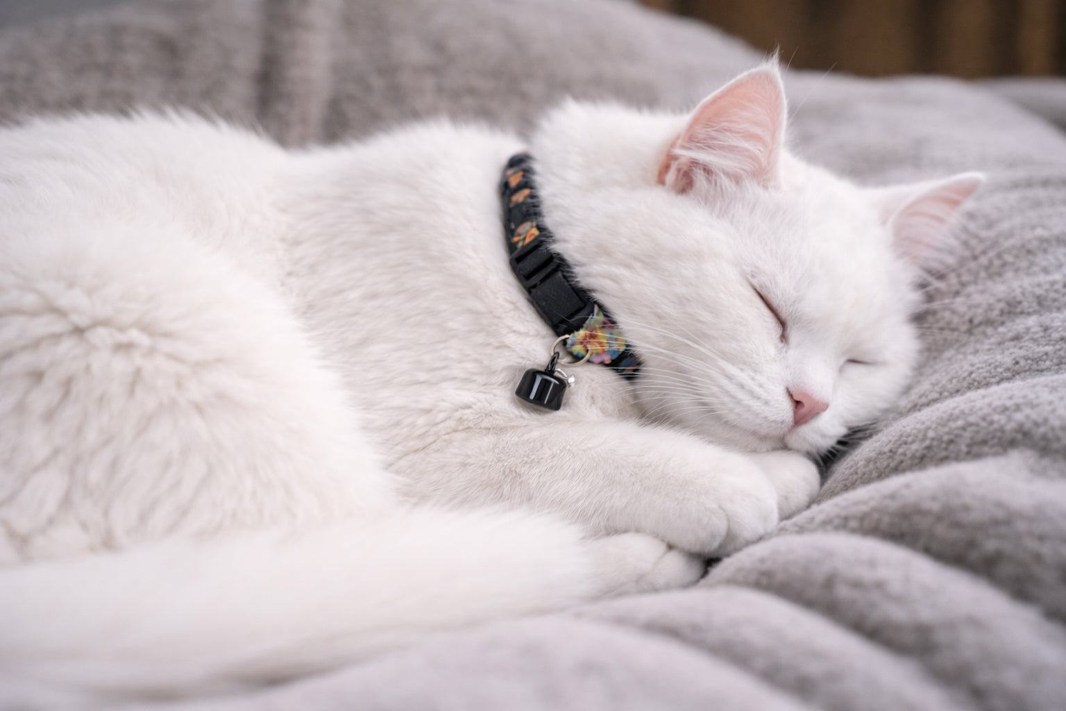 Le collier est léger, ajustable et conçu pour convenir à la majorité des chats (ou petits chiens). Nous recommandons son utilisation pour les chats de plus de 6 mois afin d’assurer un maintien optimal et confortable.